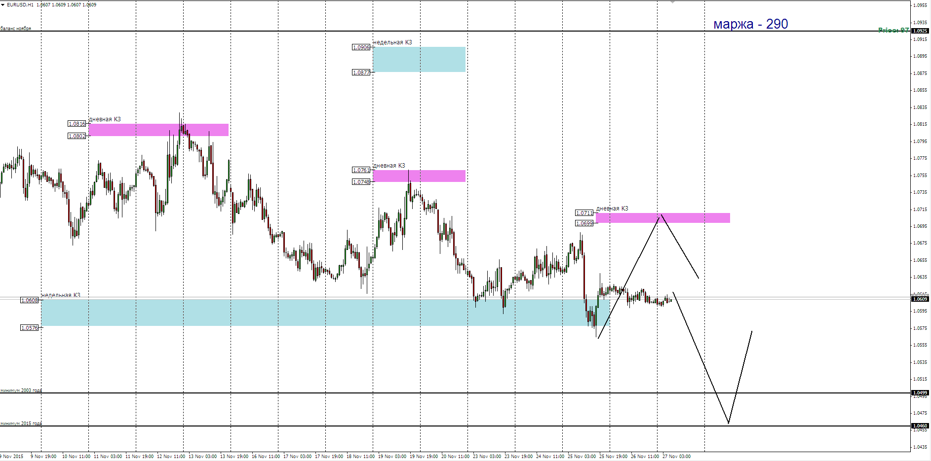 Формирование коррекционной модели старшего периода может стать возможным и после теста нижней границы месячной КЗ. В этом случае, на первый план выйдут покупки с целью возврата к уровню баланса ноября.