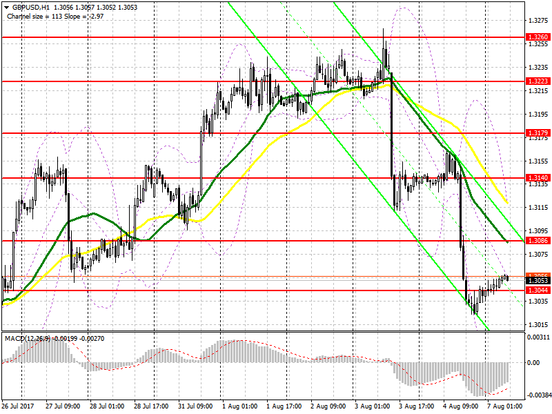 Пока фунт находится выше 1.3044, можно рассчитывать на дальнейшую восходящую коррекцию в район сопротивления 1.3086, где рекомендую фиксировать прибыль. Повторное формирование ложного пробоя на 1.3044 также будет дополнительным сигналом к открытию длинных позиций в фунте. В случае дальнейшего падения GBP/USD, возвращаться к покупкам можно на отскок от более крупной поддержки 1.3003, либо при отсутствии там объема, дождаться теста 1.2963 и открывать длинные позиции там.