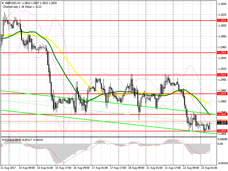 Покупатели могут вернуться в рынок после пробоя и закрепления выше уровня 1.2841, от которого можно рассчитывать на более крупное восходящее движение в британском фунте с целью обновления 1.2879 и 1.2914, где рекомендую фиксировать прибыль. В случае падения фунта в первой половине дня под уровень 1.2810, возвращаться к покупкам лучше всего при ложном пробое на 1.2716, либо на отскок от 1.2709.