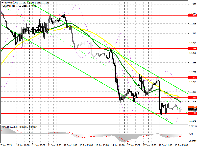 Медведи постараются в первой половине дня пробиться ниже поддержки 1.1186 после выхода данных по еврозоне, что приведет к сохранению нисходящего тренда и тесту минимумов 1.1161 и 1.1138, где рекомендую фиксировать прибыль. Если же пара EUR/USD сумеет вернуться на сопротивление 1.1211, то при таком сценарии рассчитывать на короткие позиции лучше всего после обновления максимума 1.1242, либо на отскок от более крупного уровня 1.1286.